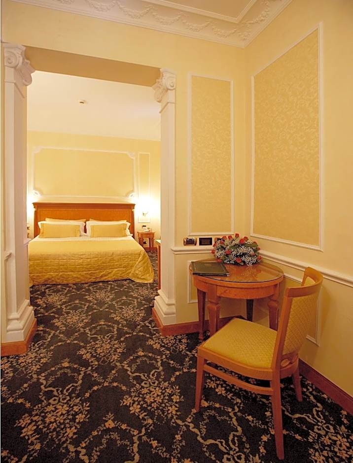 This larger room features a Jacuzzi® spa bath. It also includes elegant furnishings, a satellite TV and mini-bar.